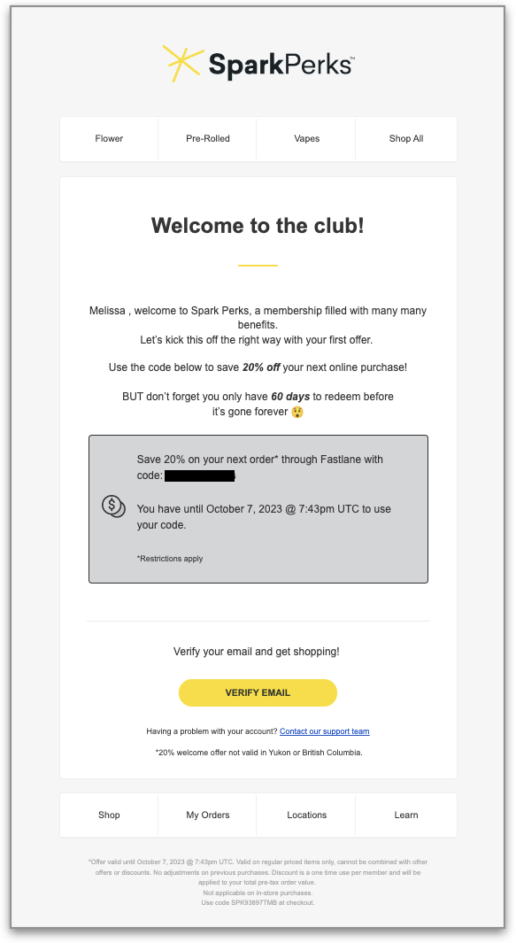 We've switched the expiry for the online welcome code from 30 to 60 days. Here is an example of what the new welcome email looks like now: