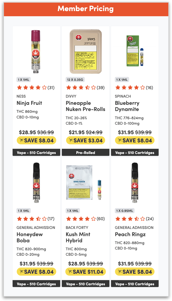 Emphasis on member pricing - We've enhanced the user interface for the Filtered Products and Top Reviewed menus to better illustrate the cost savings that Spark members receive. Customers can leverage the digital displays in store to easily compare regular versus member pricing, and what the cost savings are per product. This update will further encourage guests to sign up to be a member while browsing in store.