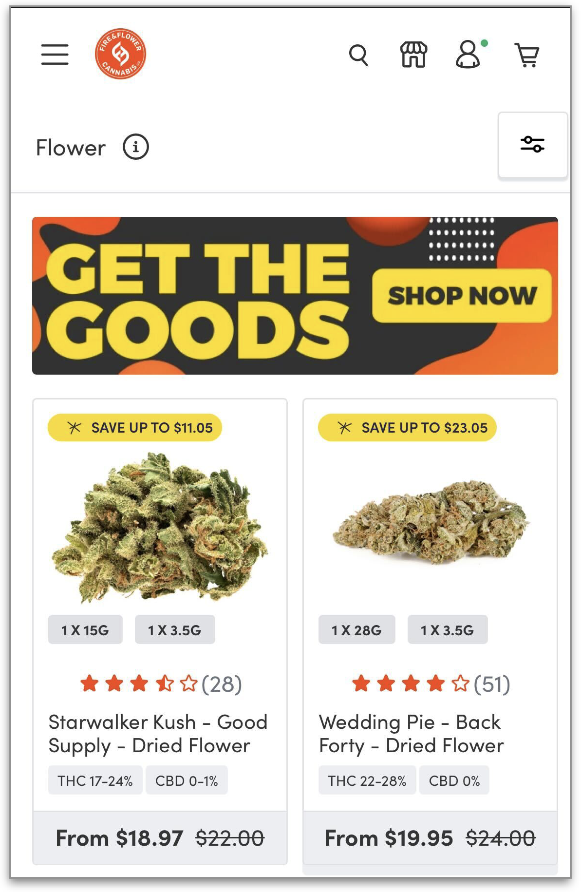 Shop Page UX updates - The mobile site is around 80% of all traffic on eComm. As part of this morning's release, we've made UX updates to the shop category pages to simplify button interactions and bring valuable product content higher up on the screen on mobile. This is an example of the new user experience for dried flower: