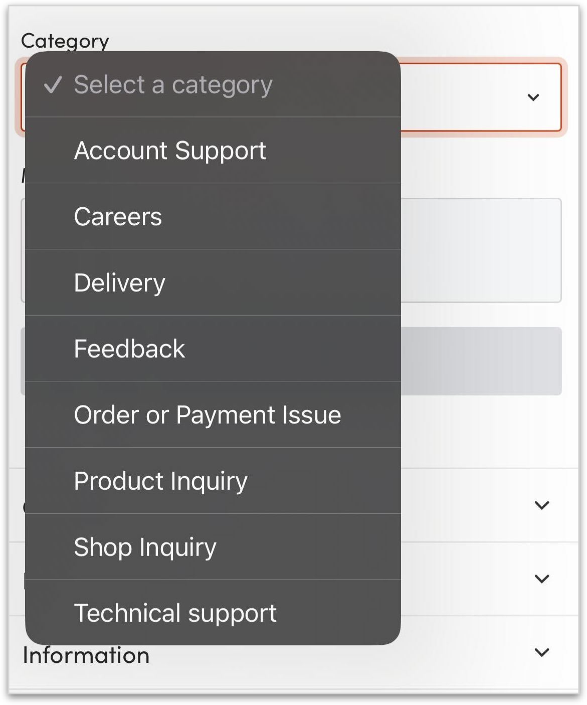 The form allows customers to use a drop down to select a category for issue type, which will be routed to the necessary group internally: