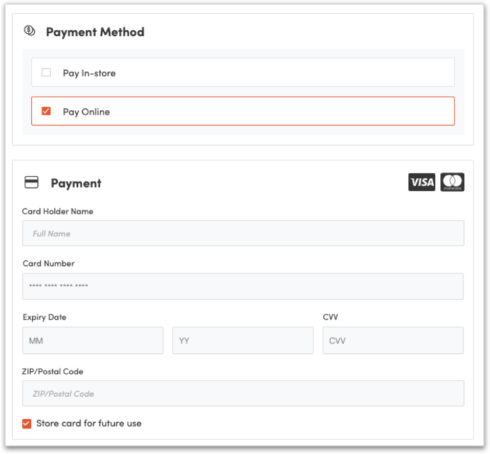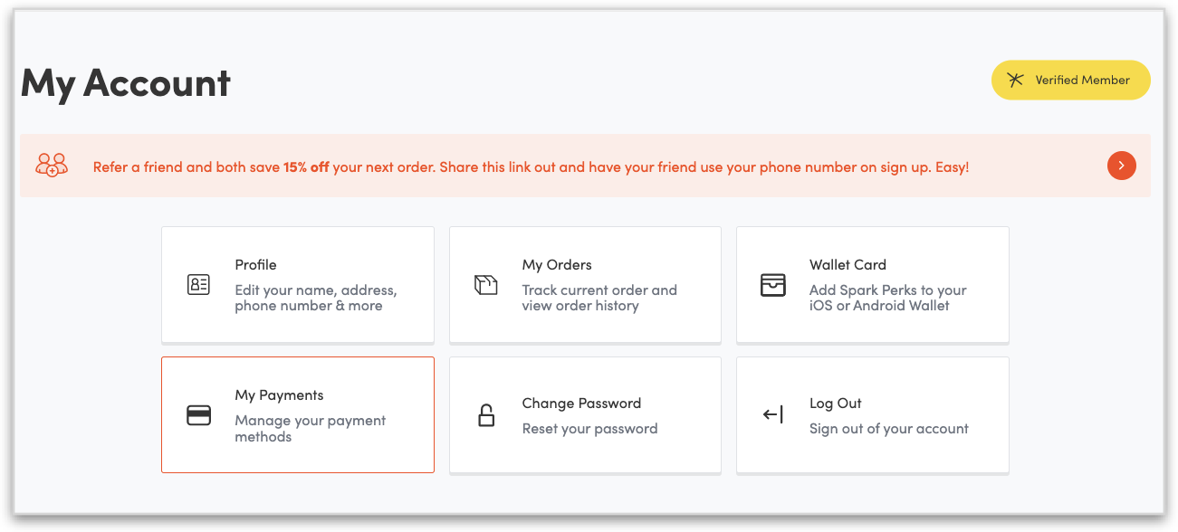 Customers can also add/remove their saved payments in their profile under the new "My Payments" section: