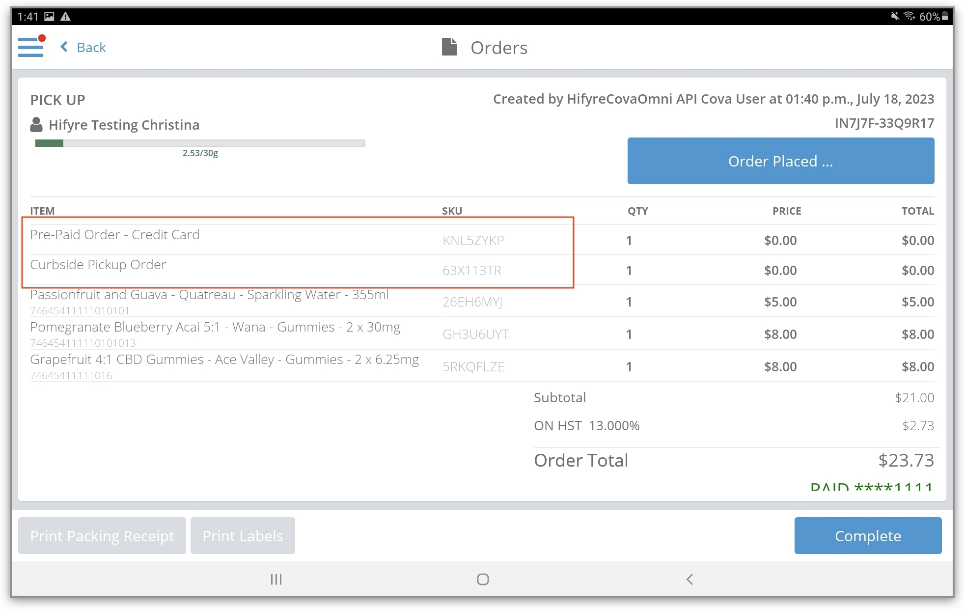 Non-stock SKU for paid orders: In an effort to improve visibility for shop employees, we've implemented a new non-stock SKU that tags online paid orders to indicate whether a customer has already paid for their order before coming in to pick it up.