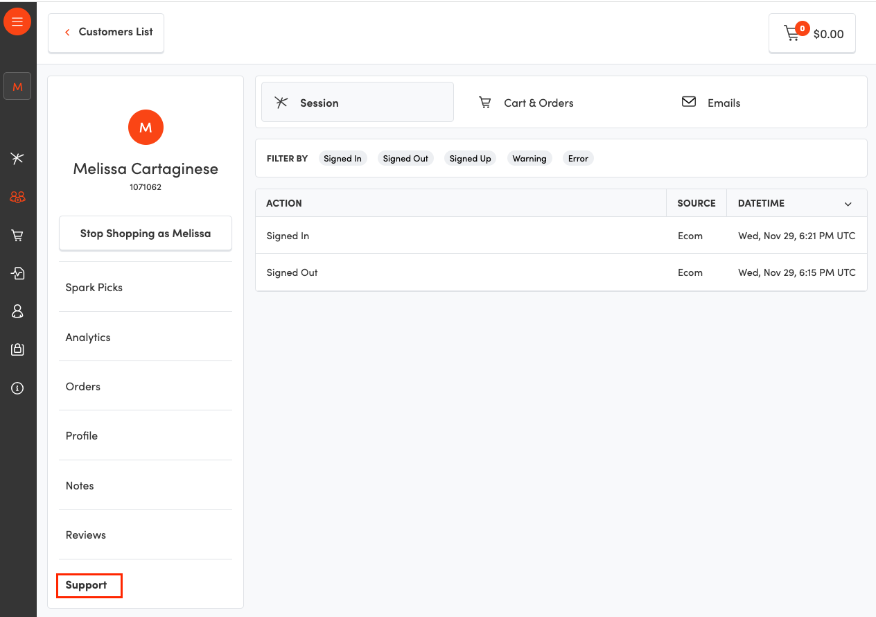 Customer Support Section - To enhance our customer support capabilities, we've introduced a new support tab within customer profiles in Clienteling. This tab grants the support team greater visibility into troubleshooting customer issues, offering insights into specific user sessions on eComm, as well as detailed information on order and email history (effective today).