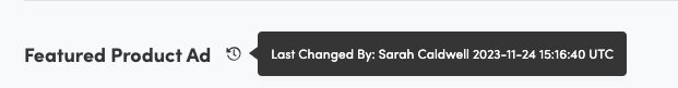 Visibility for change updates - In an effort to improve visibility on changes made within the Website Manager, Shop Manager and Digital Displays, we've included an info icon that users can hover over or click on to view the last modified by/date/time. Note: this icon is only displayed if there is recent change information available.