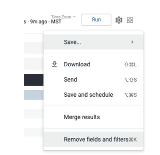 Clear Fields, Keep Filters - This maintains the fields chosen as filters, however removes them all from the report columns
