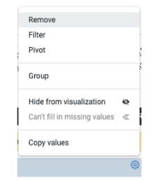 To remove an individual column, click on the cogwheel to the right of that column name and select ‘Remove’