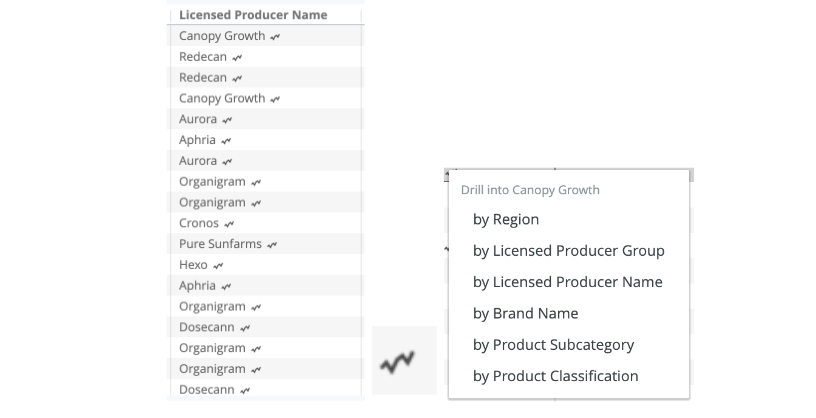 Data Drills: Where you see the ‘lightning’ symbol, you are able to drill into the data set further (ex. By region, by group, etc).
